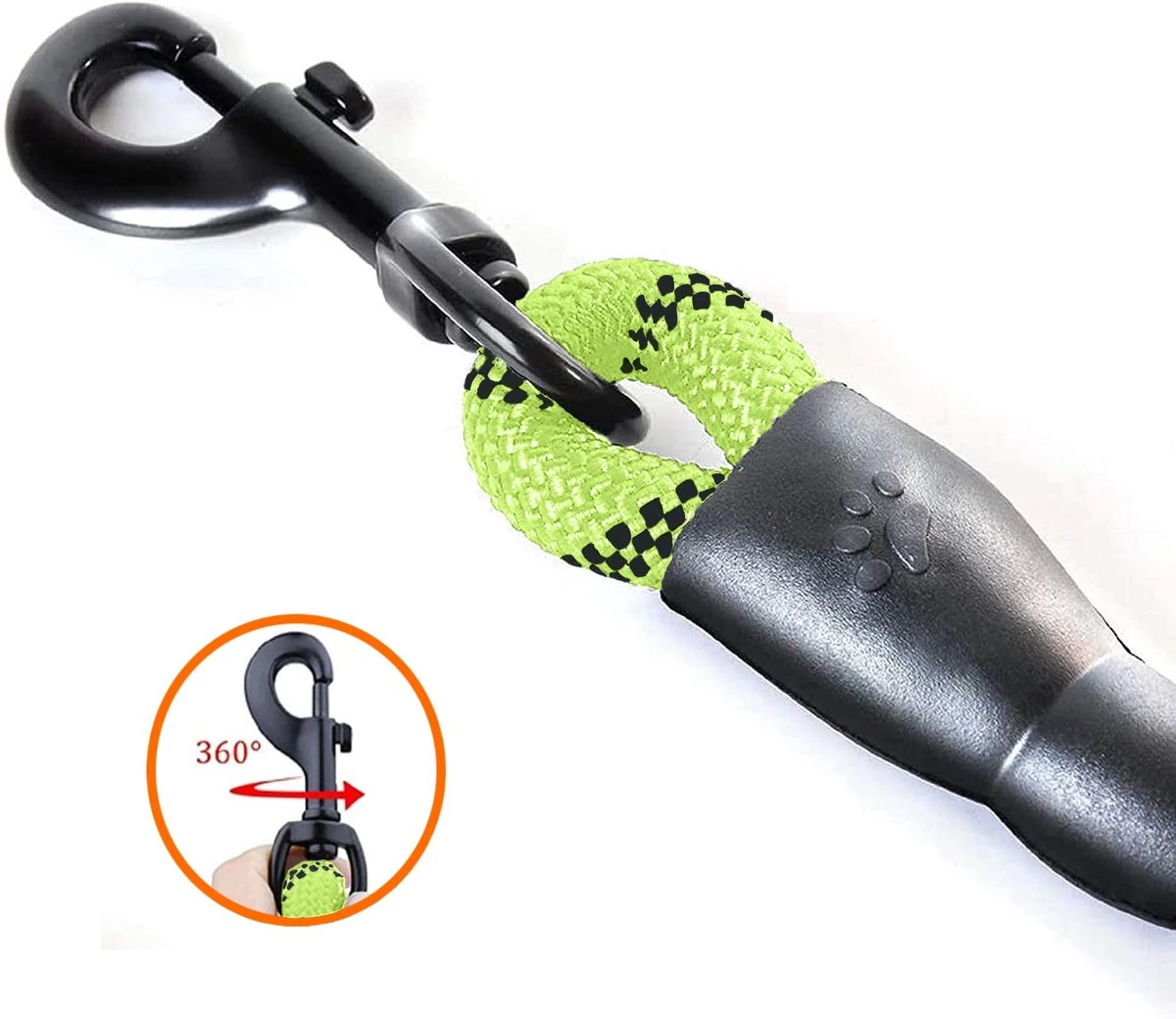 De Hondenriem is uitgerust met een hele stevige Muskethaak. De haak is gemaakt van RVS en is 360° draaibaar. Met een simpele klik is de riem bevestigd aan de halsband van je hond. De hondenriem bevat reflecterende vezels, waardoor je hond ook nog eens beter zichtbaar is.