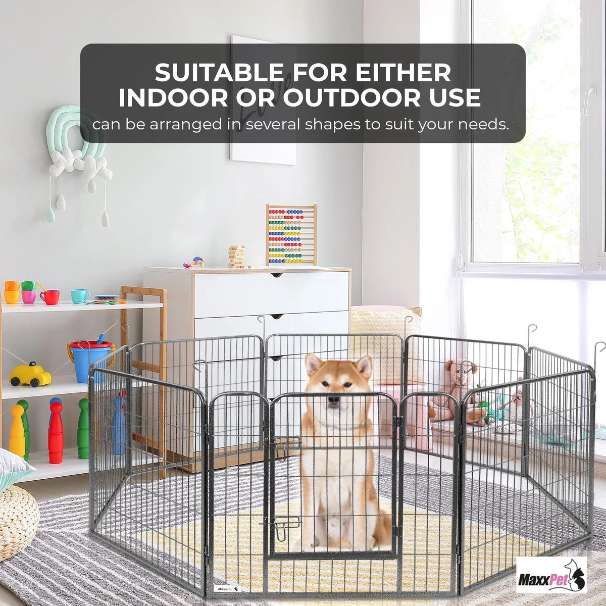 Op zoek naar een veilige en stevige puppyren? Deze puppyren van MaxxPet is ideaal voor het opvoeden van je puppy. Een pup heeft dag en nacht behoefte aan een liefdevolle verzorging. Deze ren zorgt ervoor dat je pup zorgelloos kan spelen terwijl je niet steeds je aandacht erbij hoeft te houden. De ren is zeer veilig en door zijn dikke frame van 1,5 centimeter staat hij stevig op iedere ondergrond.
