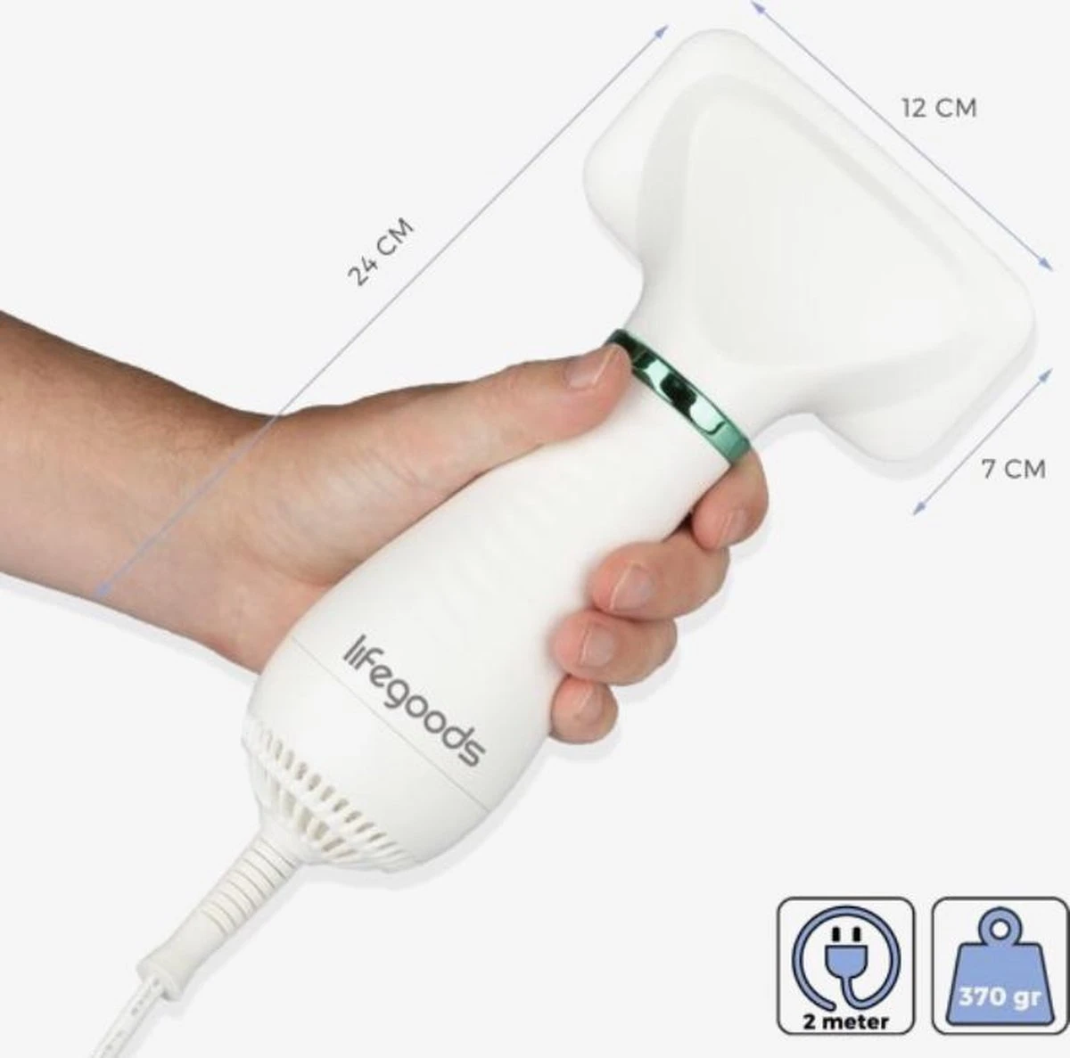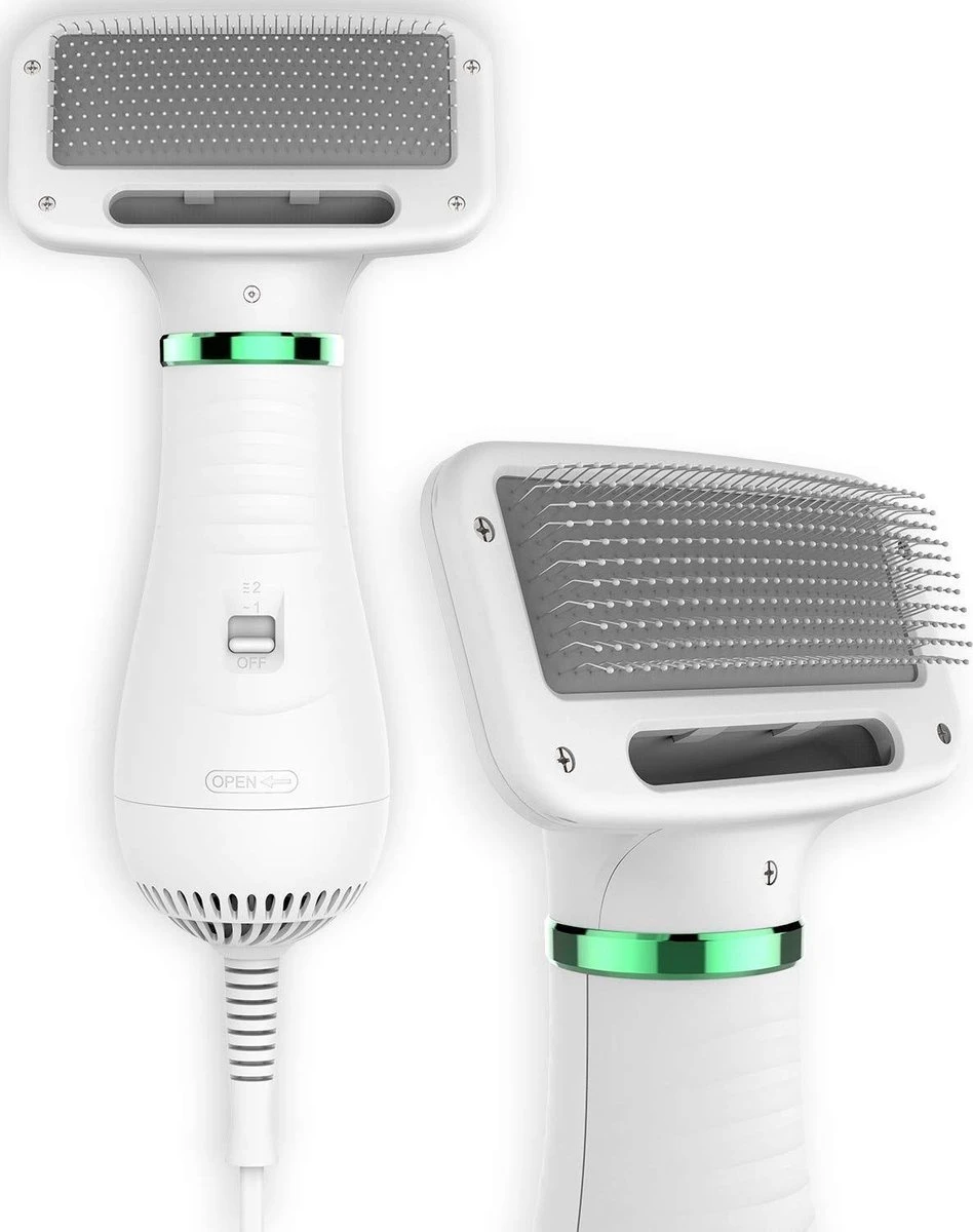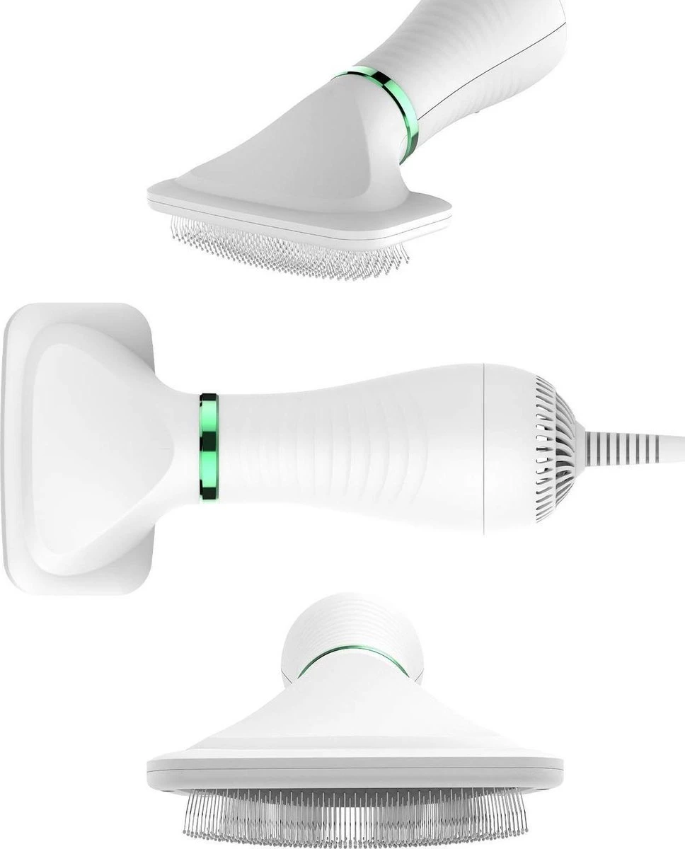 De hondenföhn met borstel is een apparaat wat iedereen met een hond, of andere huisdieren, zou moeten hebben! het is zeer handig en scheelt u mega veel tijd. Uw hond zal het minder erg vinden om geborsteld te vinden, omdat de haren van uw dier veel mooier, gladder en gezonder eruit zal zien. Het is erg aan te raden bij honden die net uit bad komen of net klaar zijn met zwemmen. Ook is het erg aan te raden als u uw hond wekelijks borstelt! Het apparaat heeft ook nog is twee temperaturen voor een optimaal gebruik voor de vacht van uw dier (80 graden, 60 graden). Het apparaat heeft een RVS kam wat eenvoudig de klitten van uw dier zal wegnemen, samen met de warme föhn zal er niks lekkerders zijn voor uw dier!