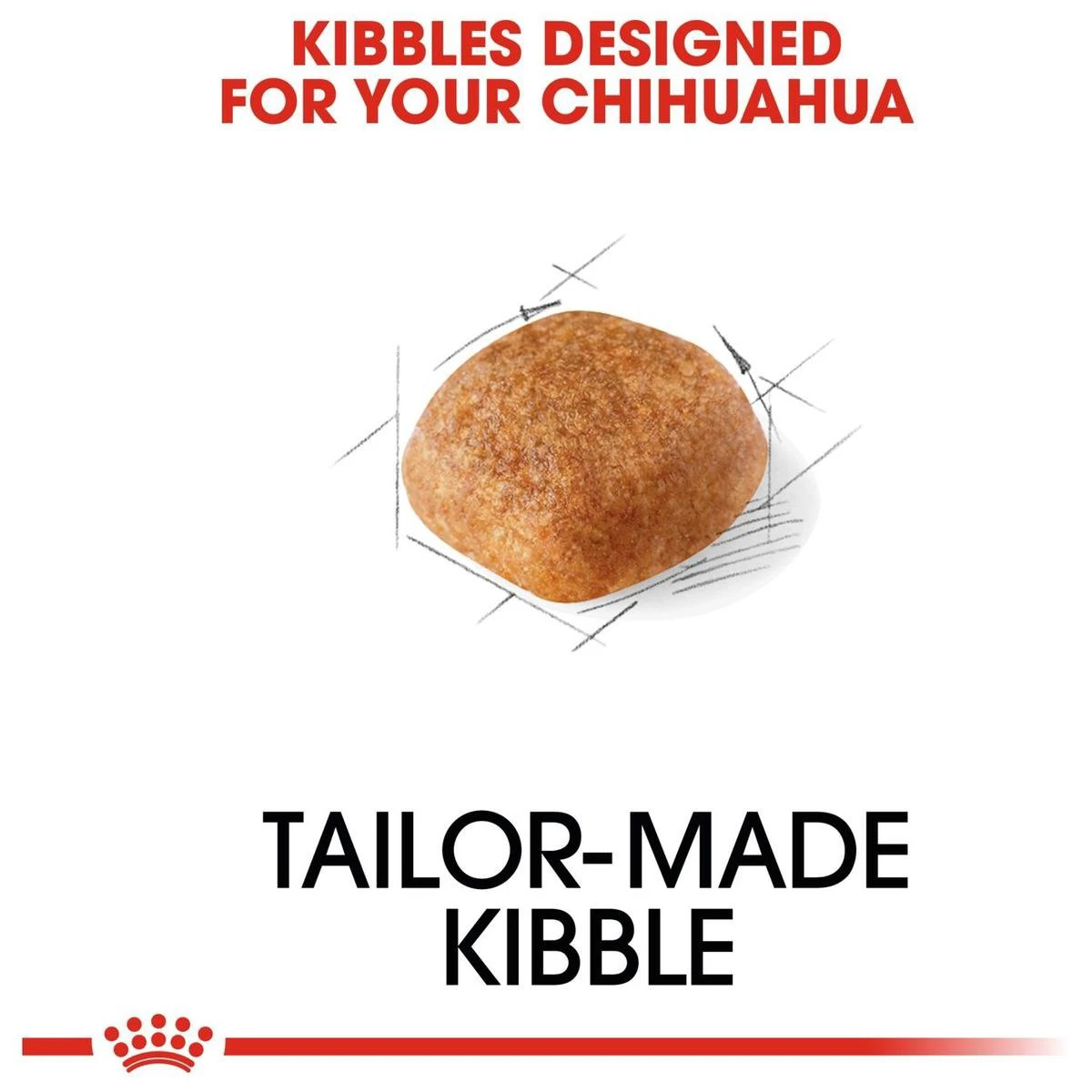 De brokjes zijn precies afgestemd op de kleine kaken van de Chihuahua.